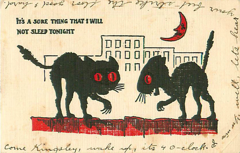 Title (ebay affiliate link): 1907 Undivided Back Scary Black Cat Halloween Postcard No Sleep Tonight O2