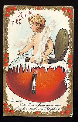 vintage VALENTINE postcard ~ HSV litho co. series V gold border cupid