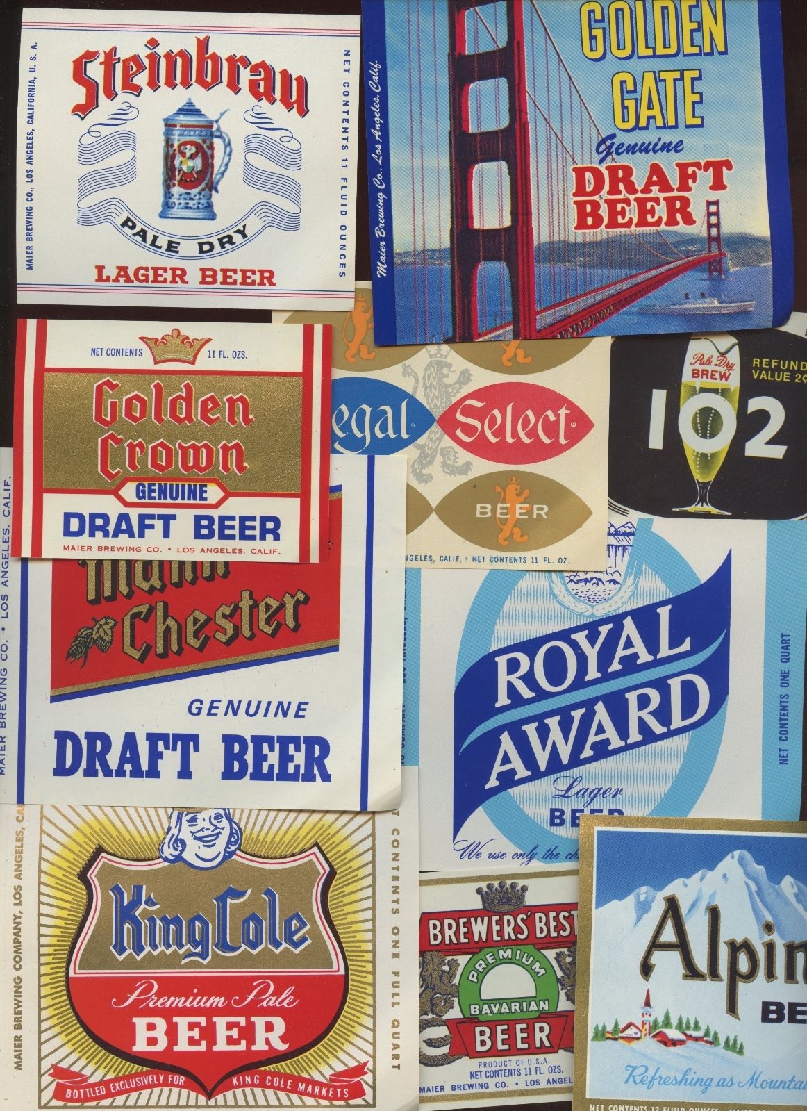 Title (ebay affiliate link): Collection of 10 Beer Labels~Maier Brewing, Los Angeles California