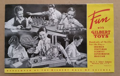 Title (ebay affiliate link): Gilbert Toys Color Foldout Brochure,A.C.Gilbert Co.,New Haven,Conn.1930's