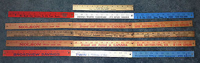 Lot of 5 Vintage Wooden Advertising Tri-Folding Yardsticks and 1 Wood Ruler