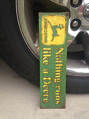 Title (ebay affiliate link): VINTAGE JOHN DEERE EMBOSSED METAL JD SALES OLD SHOP ADVERTISING DISPLAY SIGNN NR