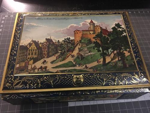 Title (ebay affiliate link): Vintage E. Otto Schmidt 1988 Large Gingerbread Tin Box Nurnberg Germany 16"x12"