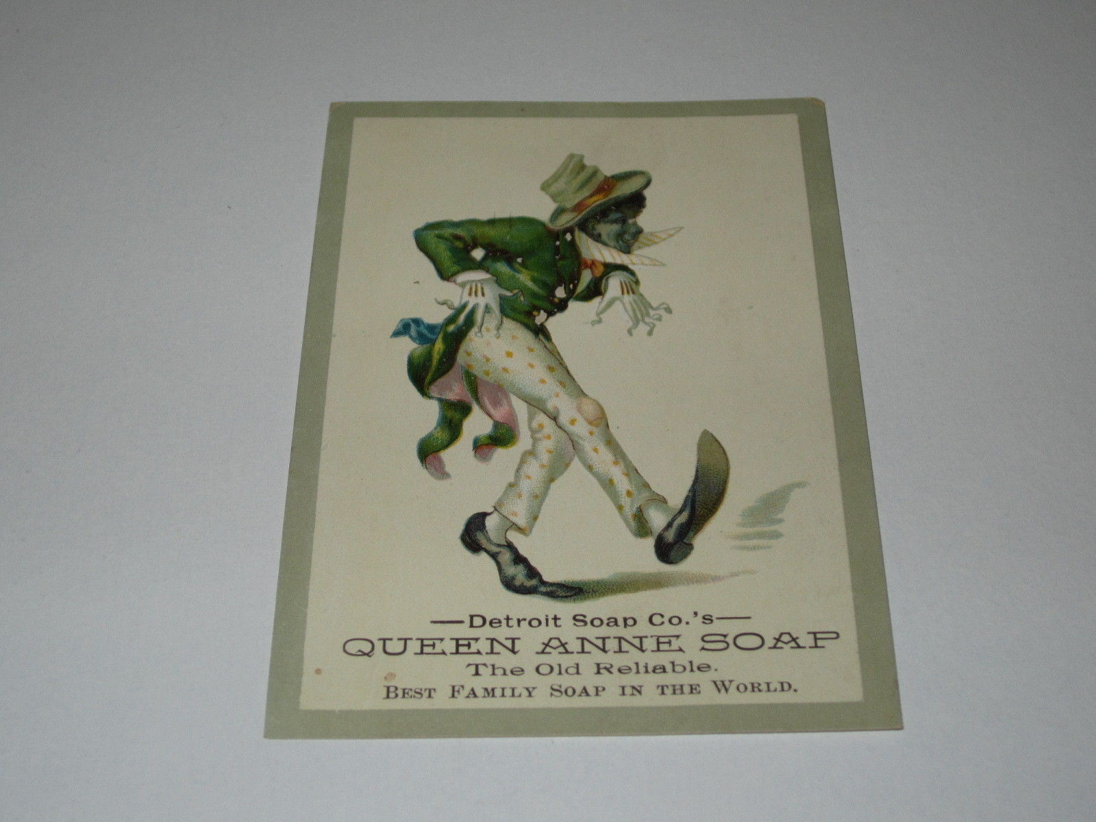 Title (ebay affiliate link): * ANTIQUE VICTORIAN TRADE CARD DETROIT SOAP CO. QUEEN ANNE SOAP *