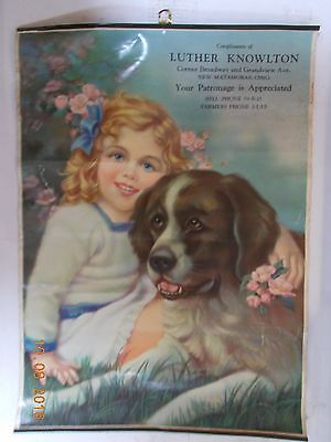Vintage Antique LITHO C.Moss 1938 LUTHER KNOWLTON New Matamoras, OH Girl & Dog