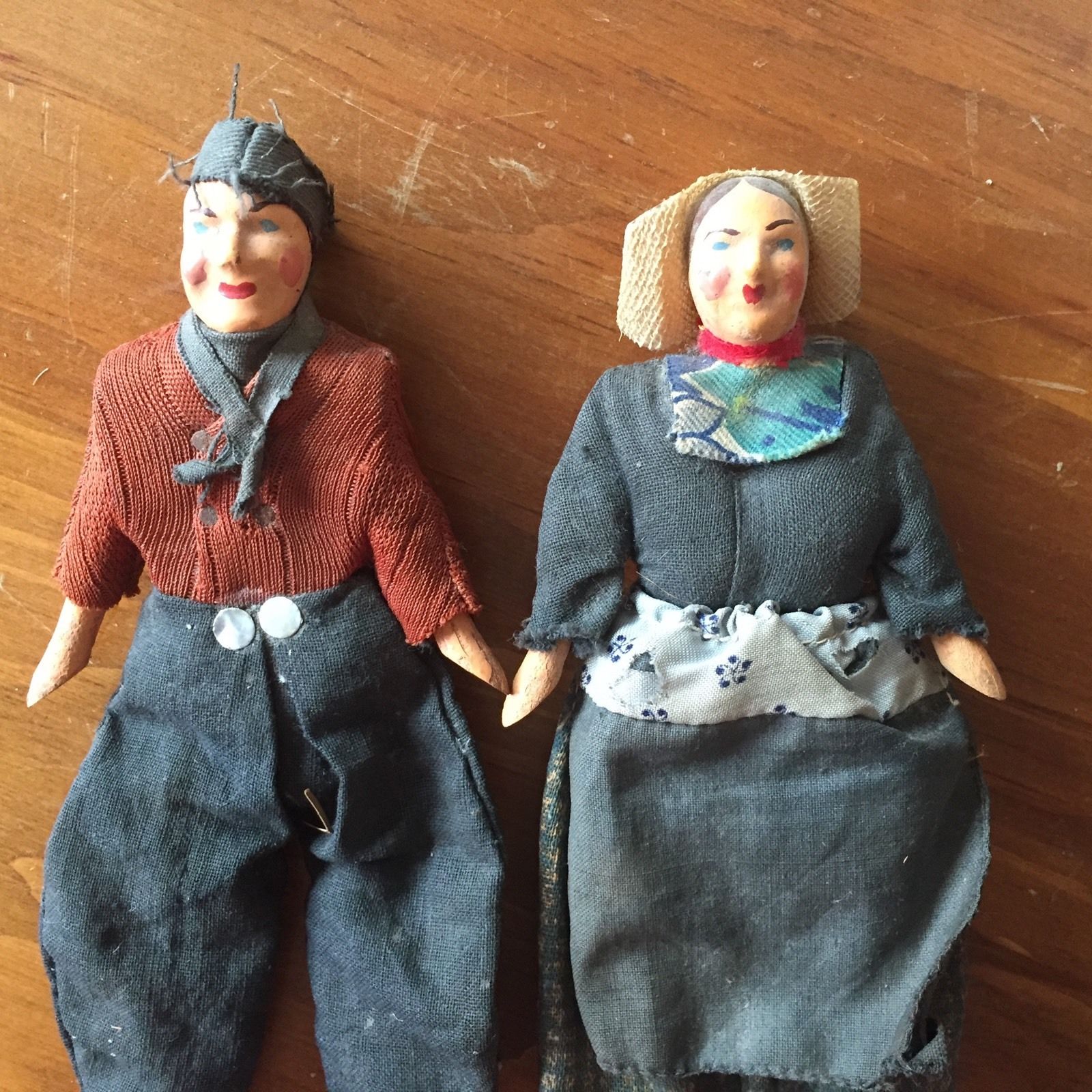 2 ANTIQUE DUTCH HAND-MADE DOLLS FROM SECRET PASSAGEWAY