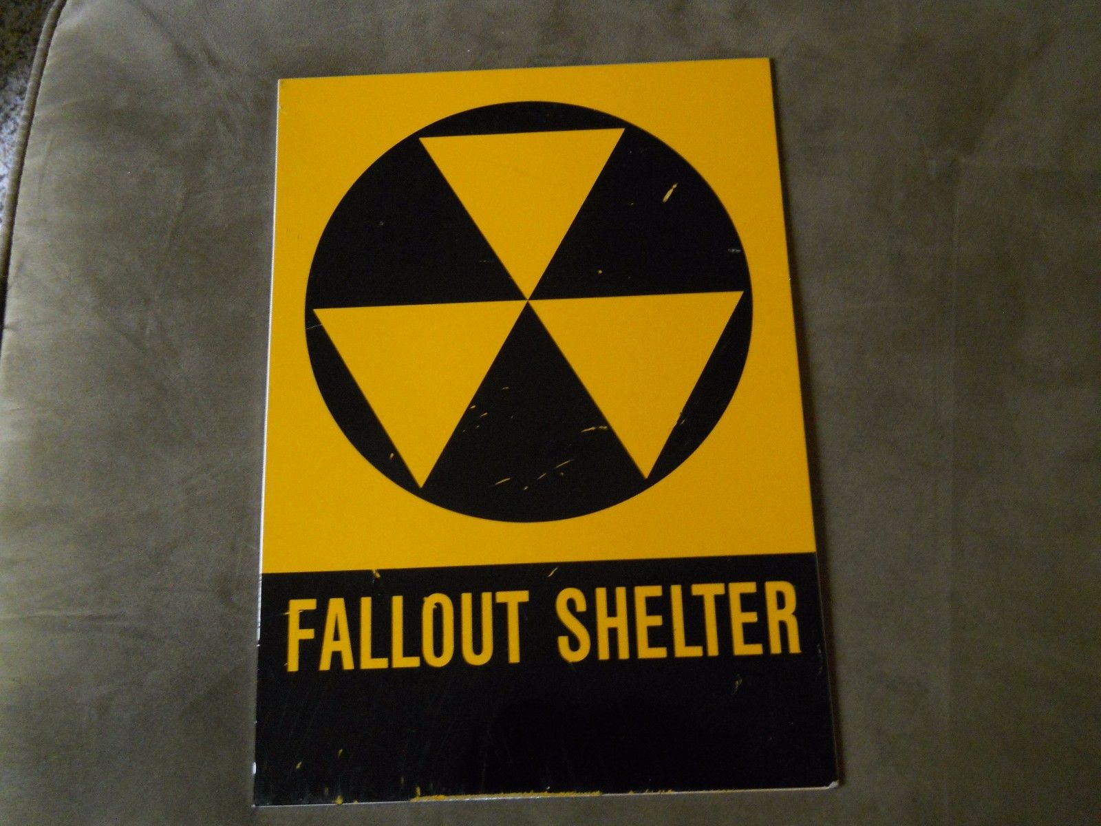 Title (ebay affiliate link): VINTAGE CIVIL DEFENSE MILITARY METAL SIGN ATOMIC BOMB FALLOUT SHELTER
