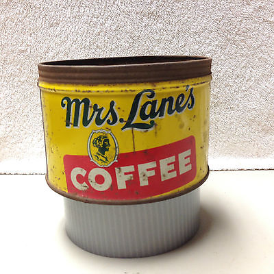 Vintage Mrs. Lanes 1 lb coffee tin can, black americana kitchen decor - rare