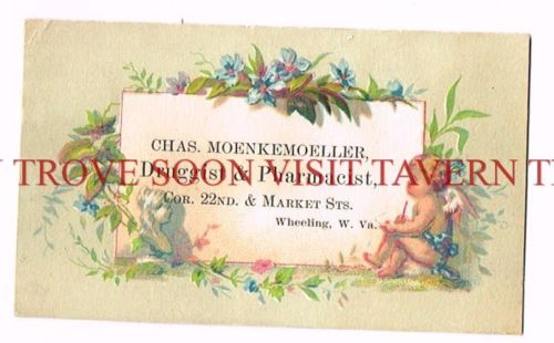 Moenkemoeller Druggist Blue Flowers Wheeling W Virginia Trade Card Tavern Trove