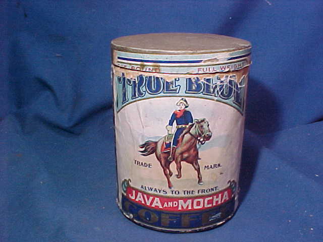 Title (ebay affiliate link): Early 20thc TRUE BLUE COFFEE Advertising TIN w SOLDIER LABEL From BINGHAMTON NY