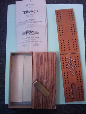 Vintage W.C. Horn Folding Cribbage Board W/ Paperwork