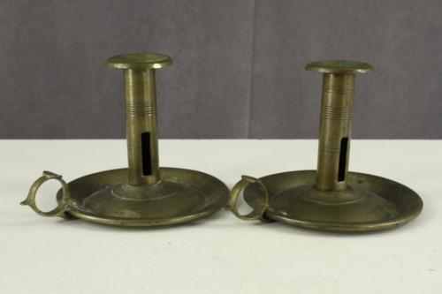Vintage Architectural Salvage 2PC Brass Handled CHAMBERSTICK Candle Holders 4"