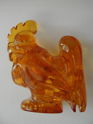 HAND CARVED BALTIC AMBER ROOSTER FIGURINE .MARKED WITH MAKER INITIALS.