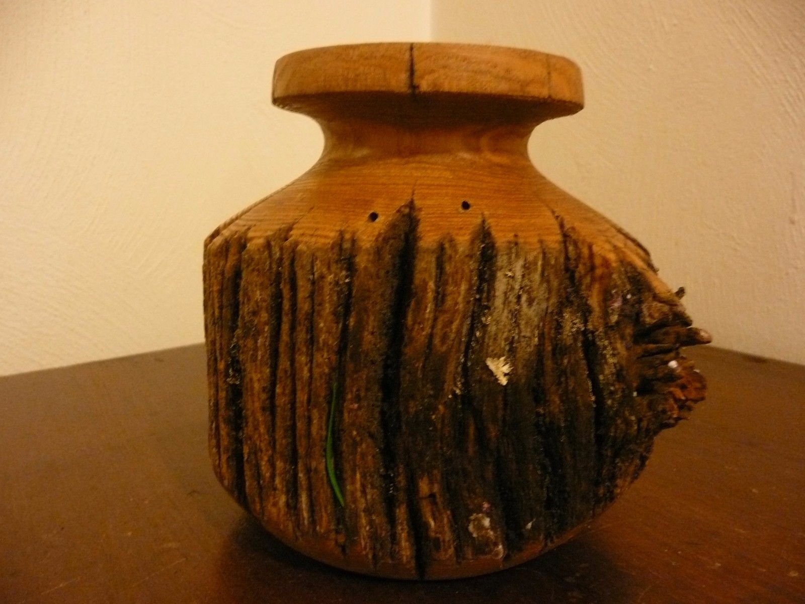 Vintage Hand Carved Rustic Turned Burl Wood Candle Holder