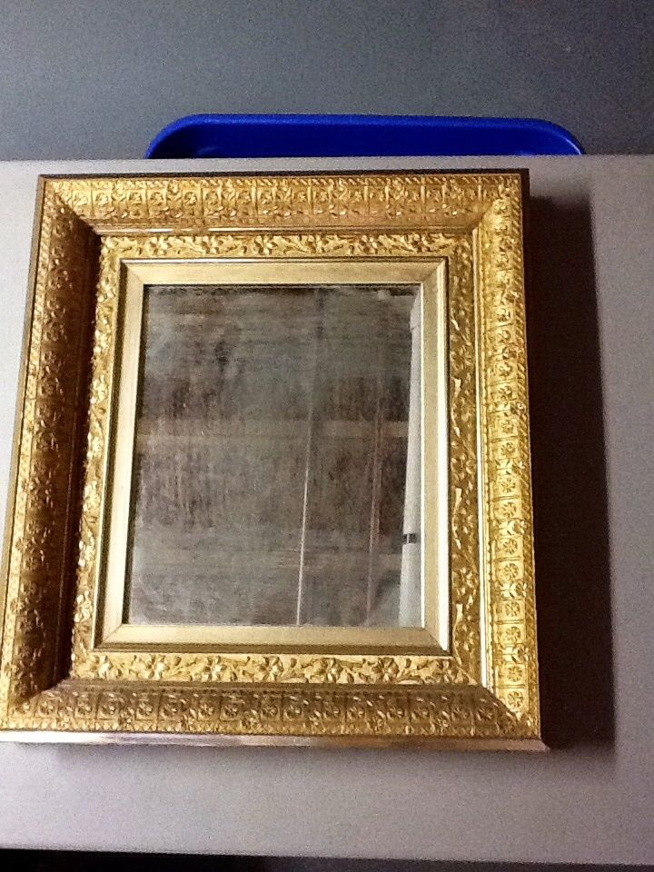 Antique Ornate Gold Gilt Wood Frame w/Mirror, 16 1/2 x 18 1/2