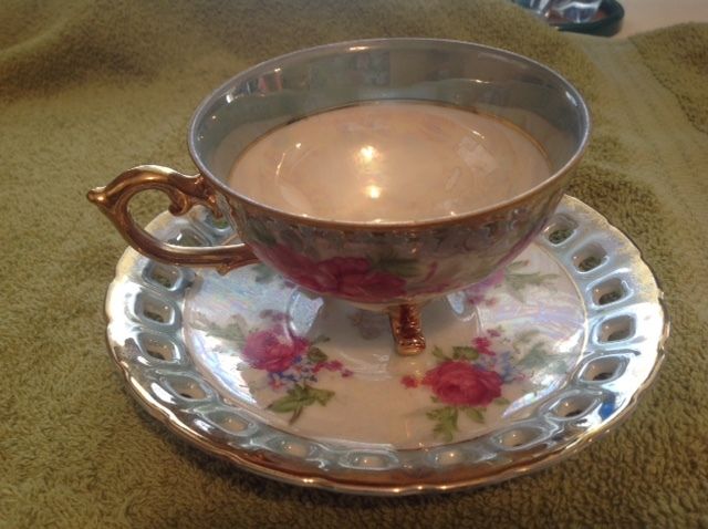 Vintage Tea Cup and Saucer Roses w/ Gold Trim #7253