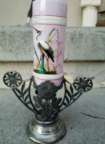 Pairpoint mfg co silver plated hand painted crane glass decor