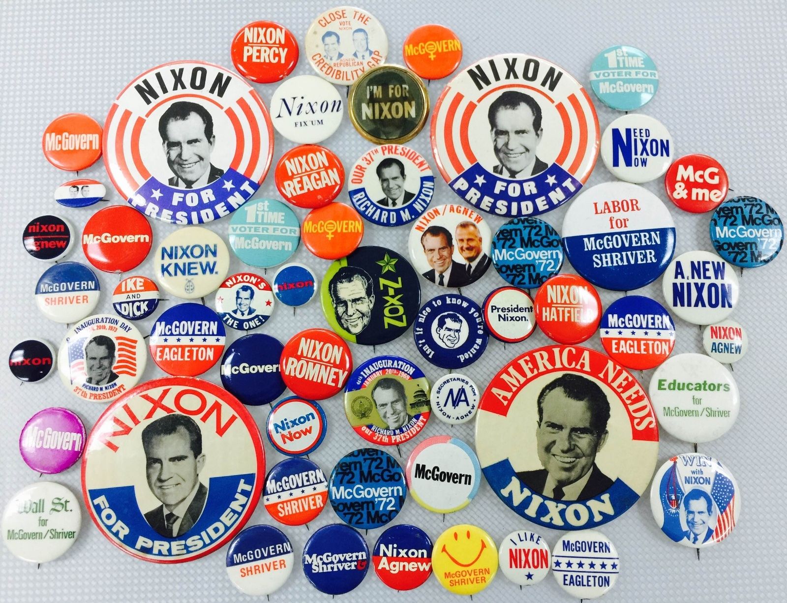 Title (ebay affiliate link): VINTAGE PRESIDENT VOTE PIN LOT- 37th President Vote Nixon, McGovern, 57 TOTAL!