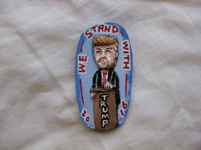 Title (ebay affiliate link): Donald Trump "We Stand with Trump" 2016 Presidential Campaign Novelty Pin