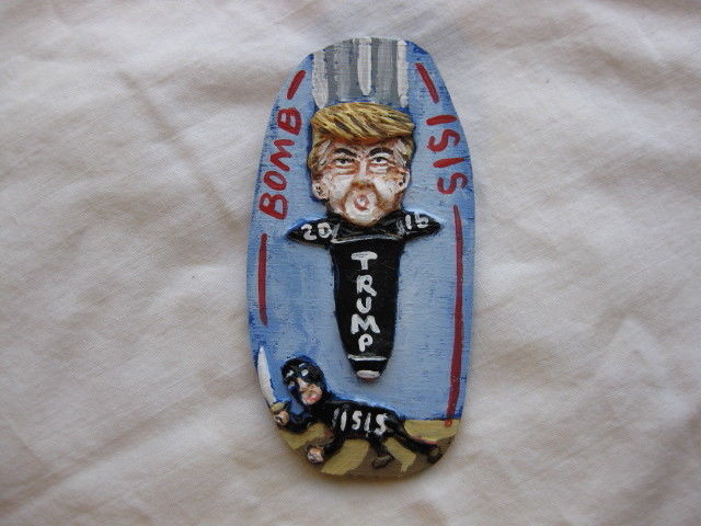 Title (ebay affiliate link): Donald Trump "Bomb ISIS" 2016 Presidential Campaign Novelty pin
