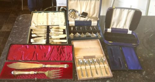 Title (ebay affiliate link): Joblot Antique Vintage cased Plated Cutlery + empty boxes silver plate etc