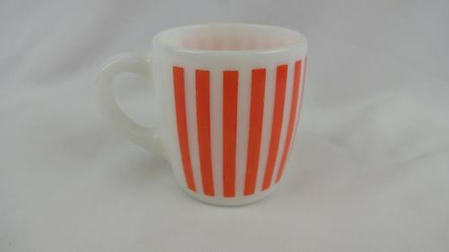 Vintage Hazel Atlas Orange Candy Stripe White Milk Glass Mug