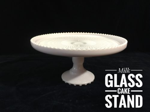 Title (ebay affiliate link): VINTAGE JEANETTE MILK GLASS CAKE STAND 10" PALE SHELL PINK