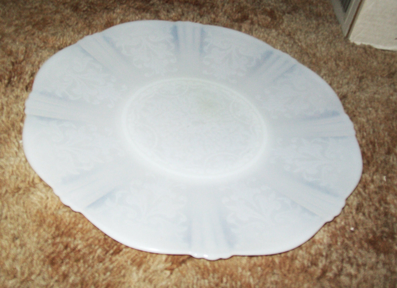 Title (ebay affiliate link): VNTG White Milk Glass Depression Ware Ornate Serving Dish Platter Plate 11 3/4"