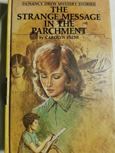 Title (ebay affiliate link): Nancy Drew Strange Message in the Parchment 54 C Keene Grosset Dunlap 1977 HC VG