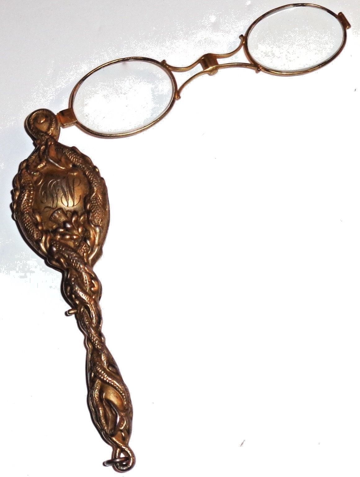 Title (ebay affiliate link): VICTORIAN Antique LORGNETTE Folding GLASSES w/ORNATE Spring Loaded REPOUSSE CASE