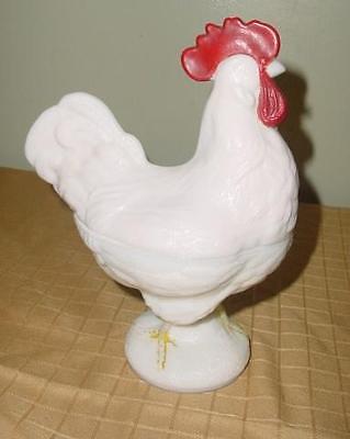 Vintage Figural Milk Glass Standing Rooster Covered Compote Bowl Box