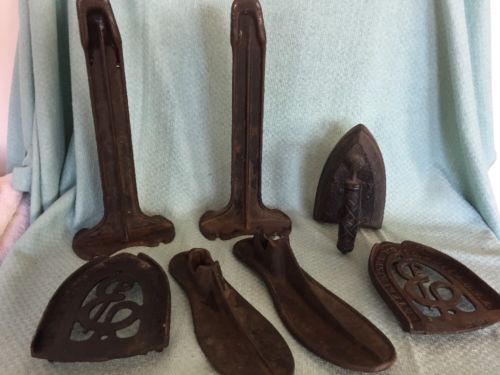 Title (ebay affiliate link): Antique Primitive Cobbler Cast Iron Shoe Repair Stand Iron Trivets