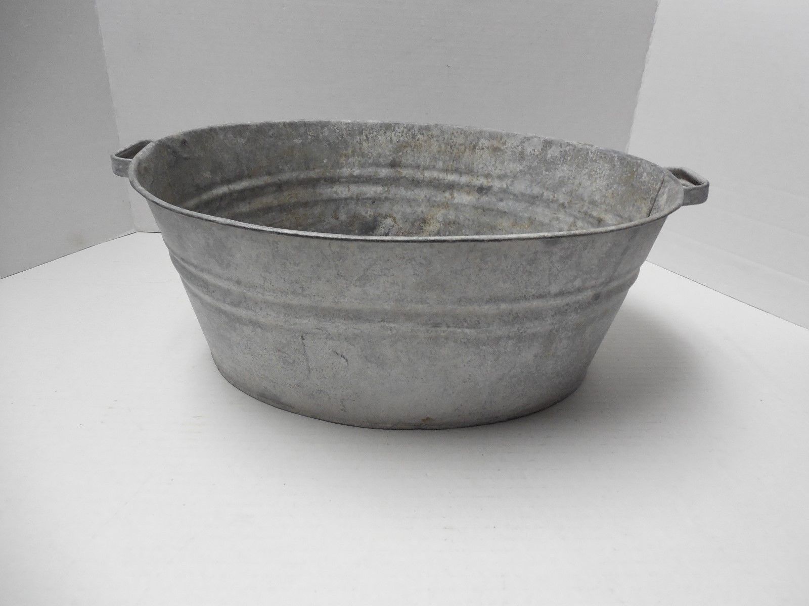 Title (ebay affiliate link): Vintage Galvanized Metal Bucket/Tub/Basin 16.5" x 12" x 7"