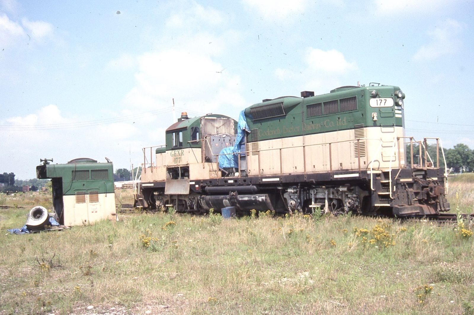Title (ebay affiliate link): ORIGINAL KODACHROME GEXR GP9 # 177 GENERATOR REPAIR STRATFORD, ON 1994