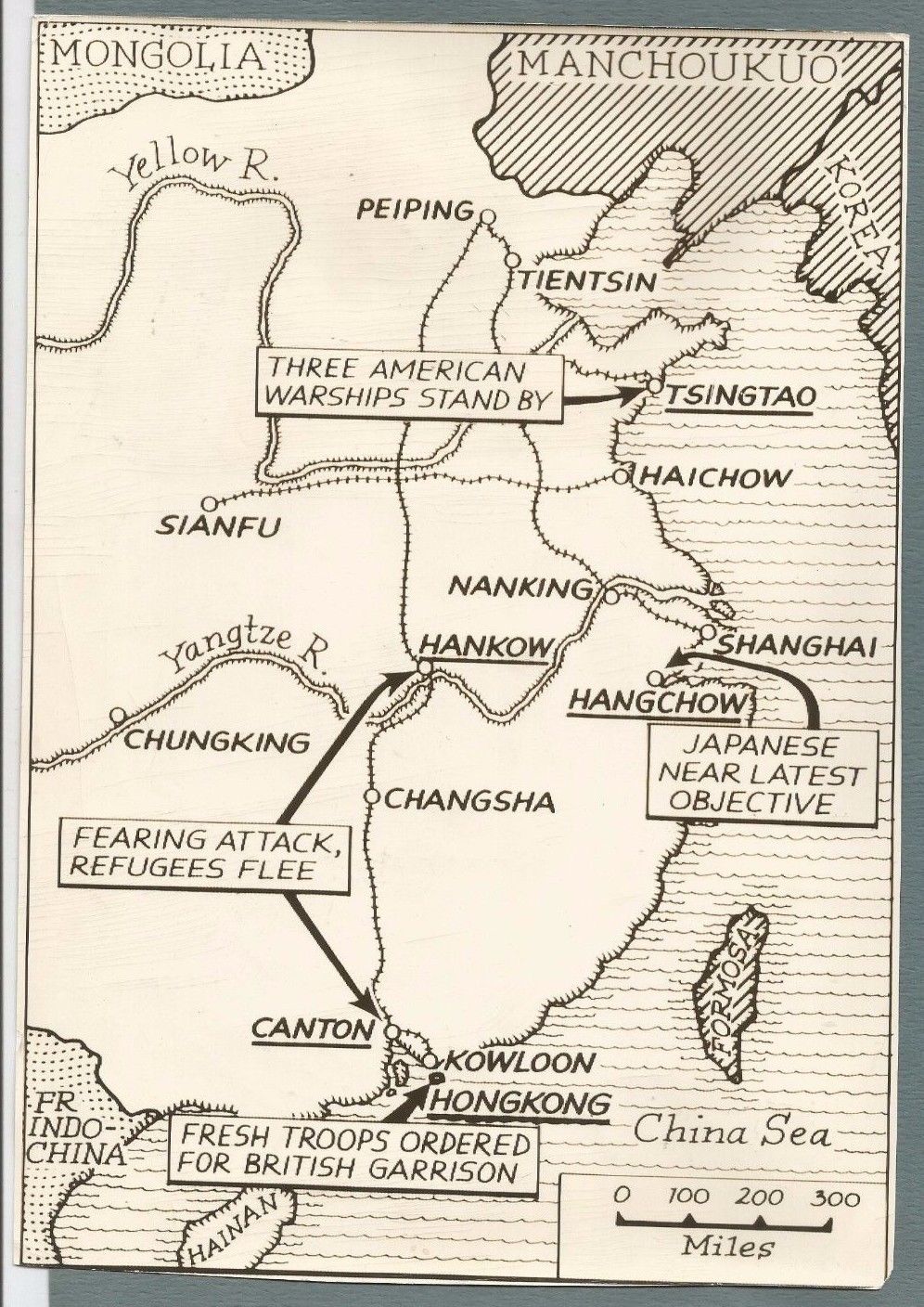 VINTAGE PRESS PHOTOS & MAP 1937 HOSTILITIES BETWEEN JAPAN & CHINA #878