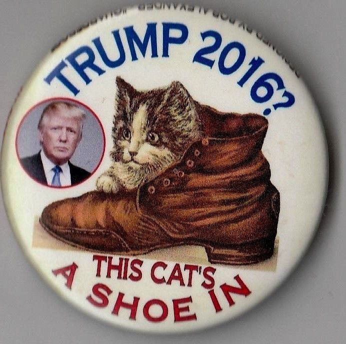 Title (ebay affiliate link): Limited Issue PUSSY CAT & SHOE Button ELECT TRUMP BADGE pin pinback 2016 Hillary