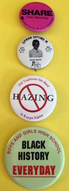 Title (ebay affiliate link): Four Interesting Black and Civil Rights Cause Pin Piinback Buttons