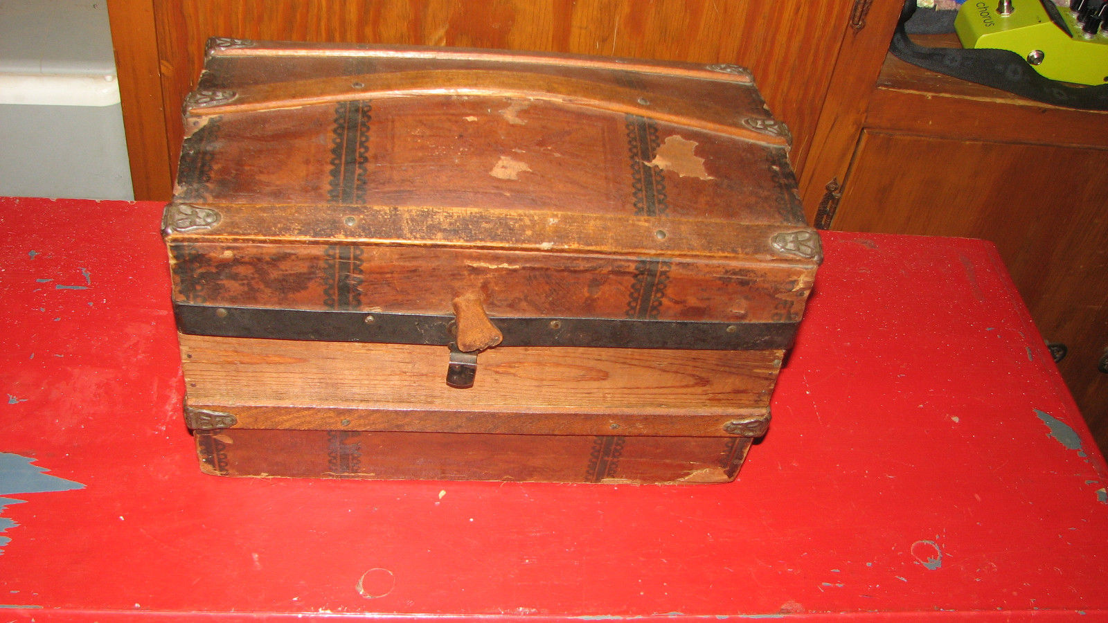 Title (ebay affiliate link): RARE ANTIQUE MID 1800s MINIATURE HUMP BACK TRUNK SALESMAN SAMPLE WITH TRAY