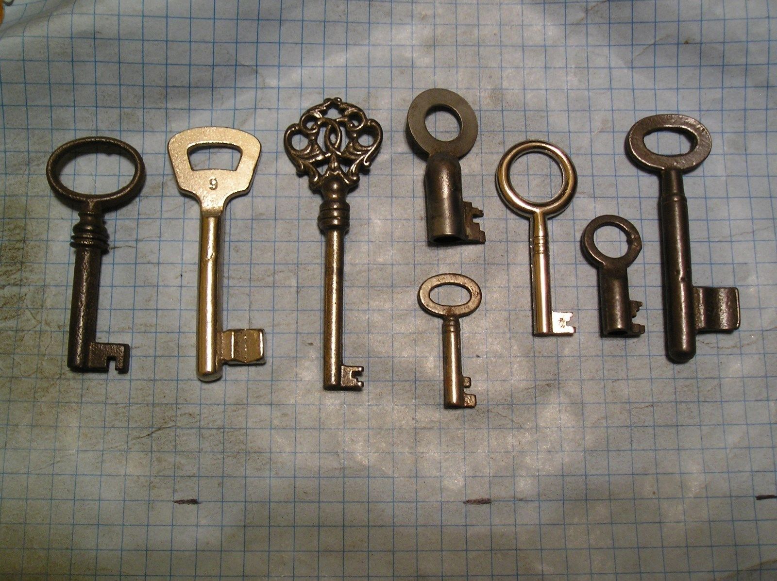 Title (ebay affiliate link): LOT OF 8 ANTIQUE SKELETON, FURNITURE, BARREL, CABINET AND OLD LOCK KEYS