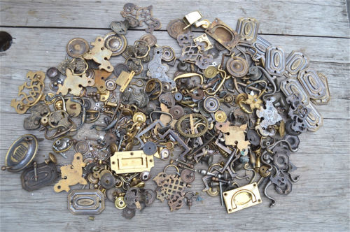 Title (ebay affiliate link): Large job lot antique furniture fittings and fixtures restorer handle knob etc.