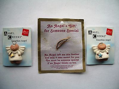 (2) Angel Cheeks Guardian Angel Pins + Angel Feather Pin