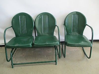 Title (ebay affiliate link): VINTAGE 1960'S METAL PATIO FUNITURE SET SOFA COUCH BENCH & MATCHING CHAIR