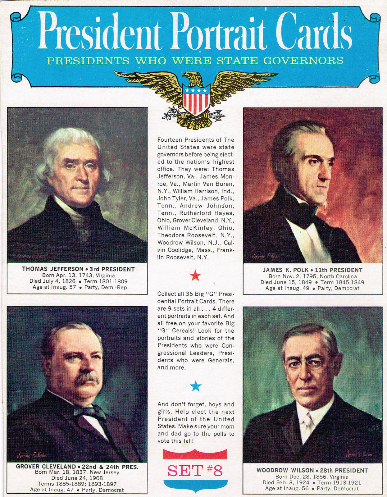 General Mills President Portrait Cards United States 1960s Set #8 Governors