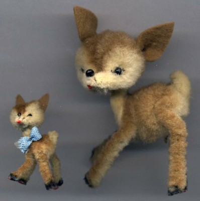 2 VINTAGE ARA AUSTRIA WOOL BAMBI DEER ANIMAL WOOLIE TOY
