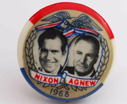 Title (ebay affiliate link): 1968 NIXON & AGNEW Jugate 1" Celluloid pin back button - A.G. Trimble