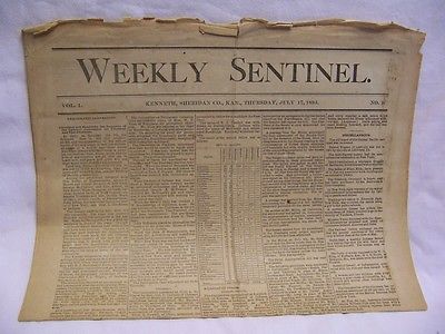 Title (ebay affiliate link): 1884 Kenneth Kansas Weekly Sentinel Sheridan County Paper Democratic Convention