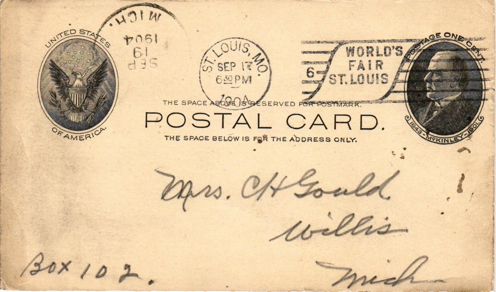 DR JIM STAMPS US ST LOUIS MISSOURI WORLDS FAIR SPECIAL CANCEL POSTAL CARD 1904