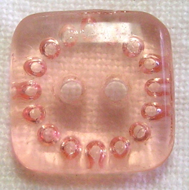 1930'S PINK DEPRESSION GLASS BUTTON - SQUARE w/RECESSED DOT BORDER