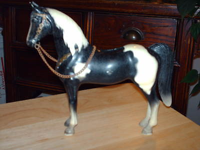 Title (ebay affiliate link): BLACK & WHITE PINTO PLASTIC HORSE/WITH METAL CHAIN REINS-O.K. COND.- 8" LONG.