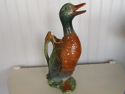 French Mojolica St. Clements Pottery 13" Tall Duck Water Pitcher